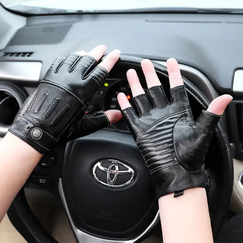 The knuckle cutouts enhance flexibility and breathability, while the half-finger design ensures precise grip and dexterity—perfect for the wheel, weekend drives, or daily commutes.
